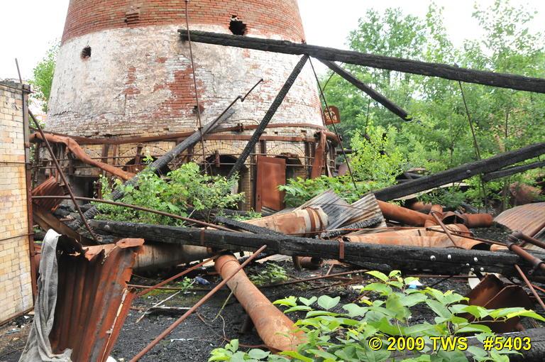 Oldest stack. Notice brick supports coming out of the chimney to hold up roof supports.