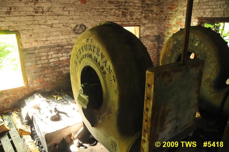 Giant blowers for cold air around furnace duct.