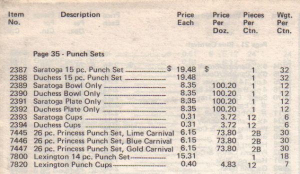 1978 General Wholesale Catalog Page 35 - Harvest Punch Sets
