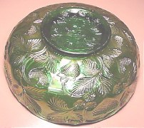 Berry Set: marigold, purple and green. A complete set is seldom seen. Its desirability is lessened by the fact the pattern is on the exterior only. This makes these bowls difficult to display effectively.