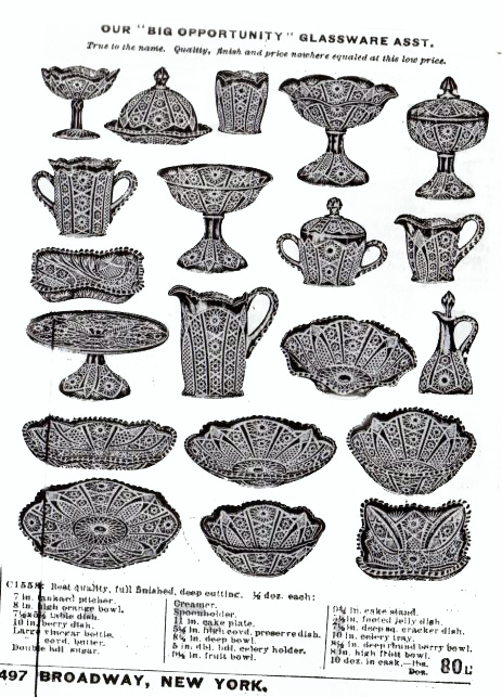 ![]() ![]() ![]() ![]() Panelled Daisy and Fine Cut Water Pitcher - 1911 Butler Brothers Ad
