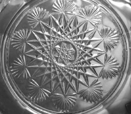 Indiana Glass introduced the Okay Pattern in 1907. It is also known as the Snowflake Base pattern. It is a rather plain punch cup with a snowflake design in the base. It was made in ruby stain and plain crystal glass. A great many of them can be found with various souvenir lettering as the example above.