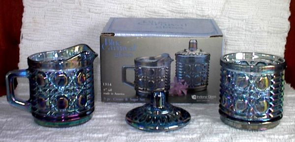 Some of the reissues were marketed as Windsor, some was marketed as the Royal Brighton Pattern. Most of the Blue Carnival Windsor did not have a pattern name on the box. It just said Blue Carnival Glass but it is all the old Federal Glass Windsor pattern. The Indiana Windsor was made in crystal, blue, pink, teal and carnival glass.